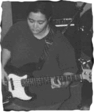 | SUNNY is bright, round, and warm like the sound of her bass. Although it seems like she was born with a bass guitar, she only started playing a few years ago. She currenly uses two bass guitars, one christened "MAHAL" a Fender Jazz, and "HEY", A Yamaha, both fitted with heavy gauge strings. She loves James Jamerson, Victor Wooten, Tai Woo, and Chow King. She says she cannot live without her dogs, books, cds, videos, Mars Attacks and Star Wars toys, nailclippers, talcum powder, toilet paper, and a clean bathroom. She has a temper and drives her car like she has a temper. She prefers spending time at home amidst her vast collection of books and videos and is an admitted pack rat. Sunny works for a top advertising agency and may have been the producer of that new ad you've seen or heard lately. | ![]() |